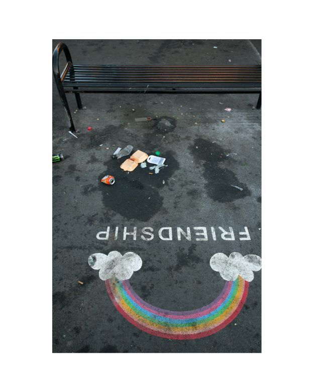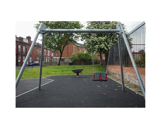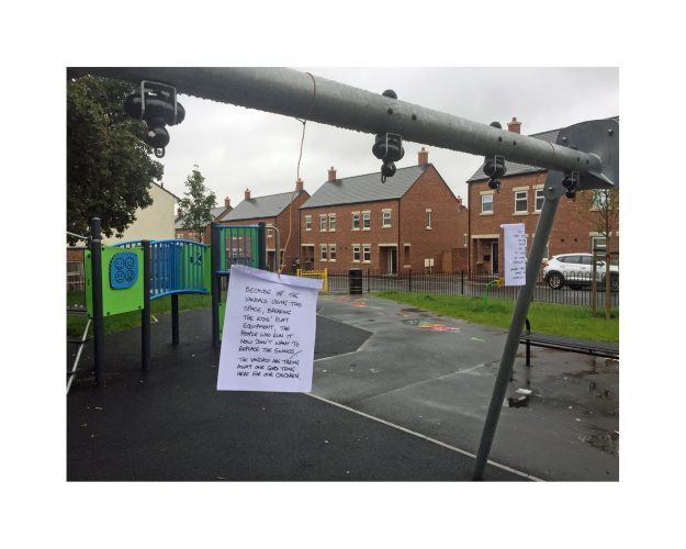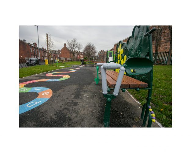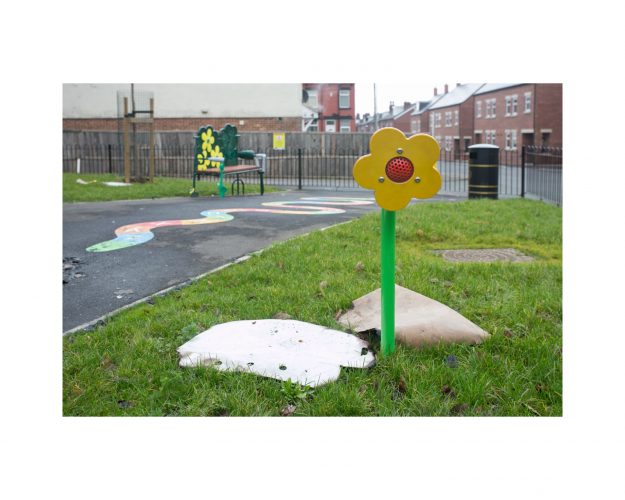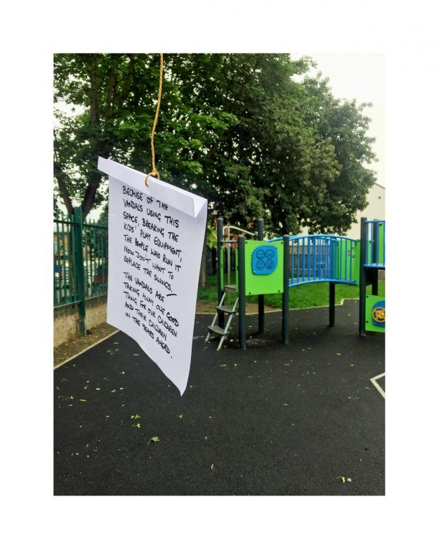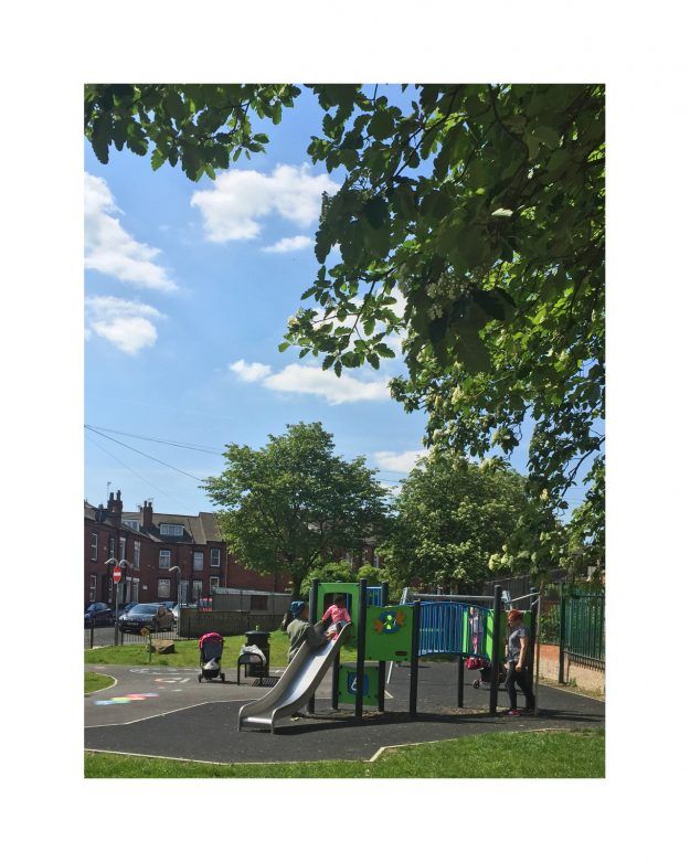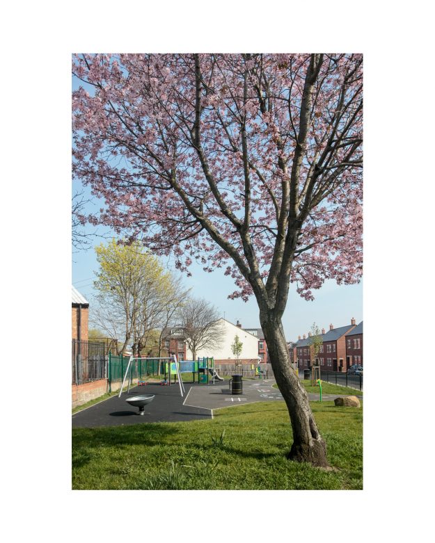 in the summer of 2018 a new cluster of modern homes was built where old Victorian terraces once stood, close to where I live. With this small regeneration came a lovely new toddlers' play park. Young family friendly. Previously this spot was rough, unkempt green space, but it had benches, grass, and borders, and street drinkers would sit here sometimes, chatting at the end of a day, and dog walkers would pass through too. A small green space to refresh. Its revamp into a clean, friendly pocket park is a surprise. It also feels like a breath of hope for nice surroundings. Will it stay this way? I've lived here long enough to know that this might be a challenge, and I'm helping to maintain it now with a small team of enthusiastic and concerned locals. So this is a photo side project of both cynicism and hope. Let's see how it progresses ...